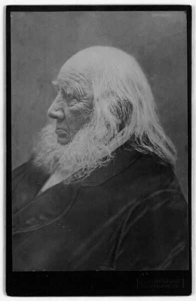 Velkendt profilbillede af N.F.S. Grundtvig som gammel mand. Sort-hvidt.